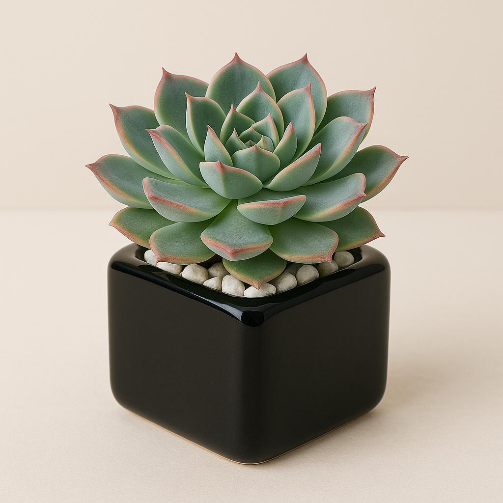 Paired with Breeze’s handcrafted premium white ceramic pot and decorative stones, this Echeveria becomes a timeless piece of living art. Low-maintenance and drought-tolerant, it thrives in bright light with only occasional watering—perfect for busy lifestyles or first-time plant owners.